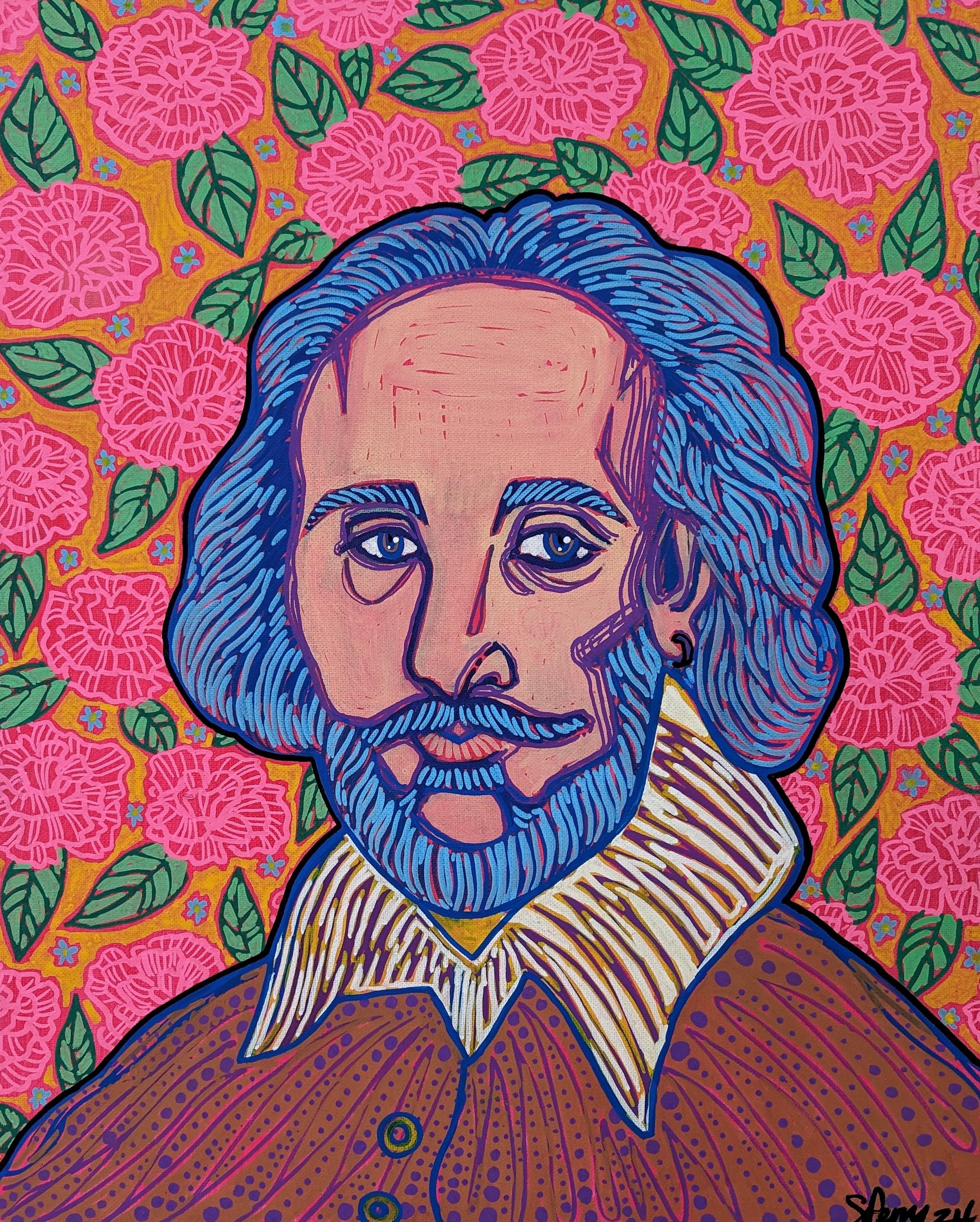William Shakespeare as the Bard in the Garden poster print in the pop art style. Achieved using Posca paint markers to create a graphic quality that is uplifting with its use of color. This is a listing for a poster print with no frame or mounting. 3 poster sizes to choose from.
