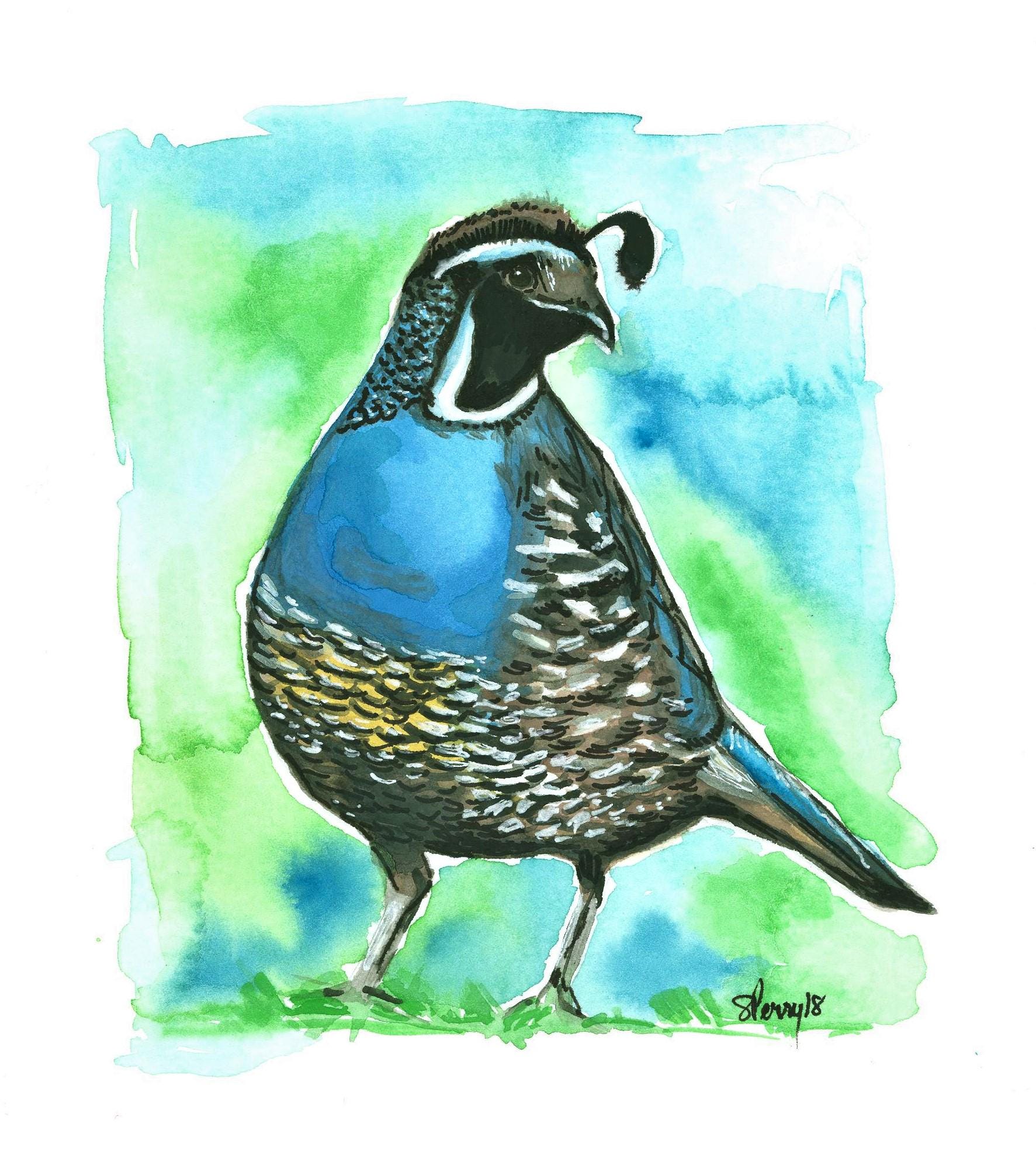 Quail study is originally a water color painting, done in 2018. Please note that this listing is for a print on canvas on demand, not an original. Please PM me to purchase originals as the prices are different than the prints. Living in the Okanagan Quail are a daily part of life and natural observation, i spend many an afternoon watching them feed in large groups as they stay close together to protect their young, and band together with other quail couples to create a community. They are beautiful and fascinating creatures.